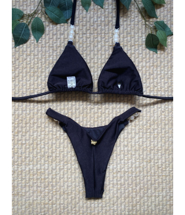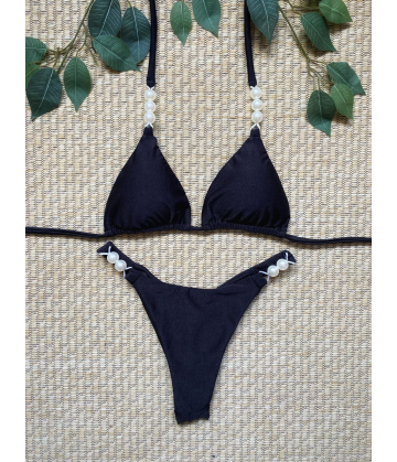 Biquíni com busto cortininha, bojo removível detalhe em pérolas