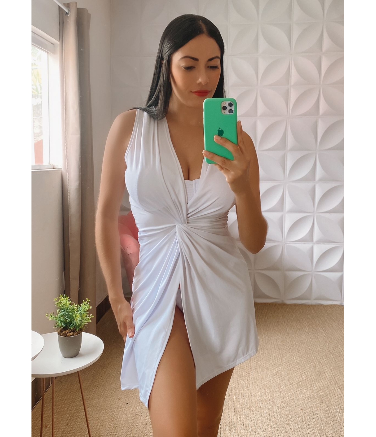 Vestido curto de alça em duna com bojo