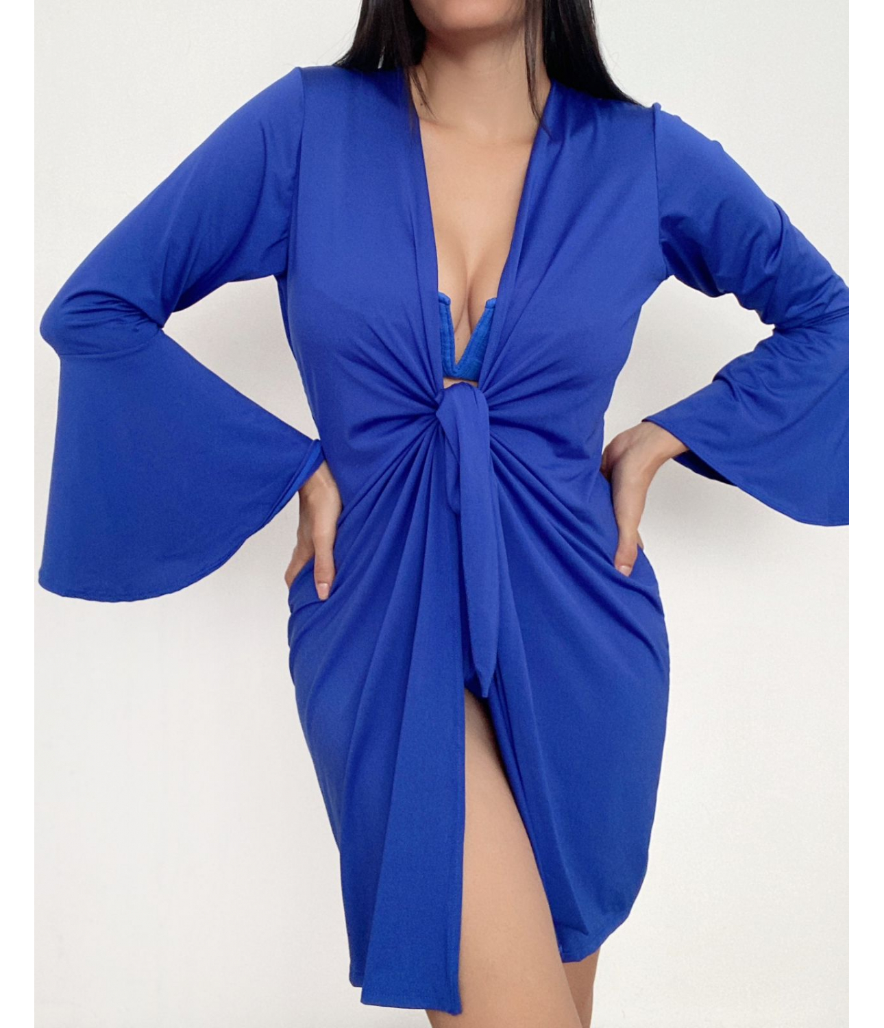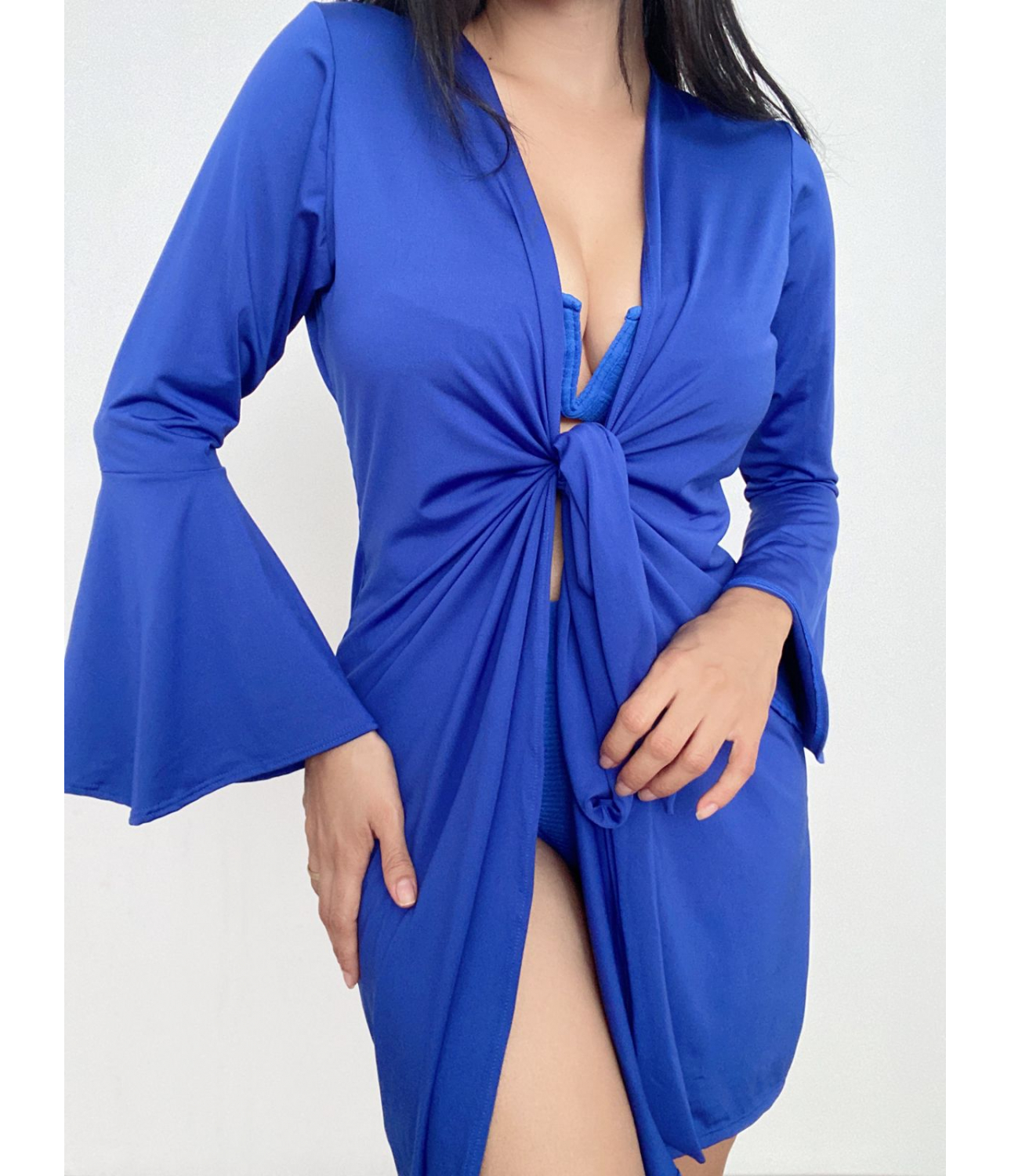 Saída de praia curta com manga longa flare